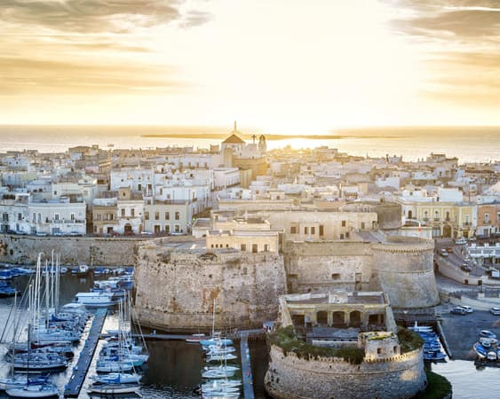 Guarda i pescatori che arrivano con il pescato del giorno, assaggia i deliziosi frutti di mare e visita le principali attrazioni di questo vivace porto. Trascorri una mattinata o un pomeriggio godendoti le attività del porto di Gallipoli. Il porto è convenientemente situato nel punto in cui il centro storico di Gallipoli incontra il centro moderno. È un posto dove guardare i pescatori al lavoro e provare deliziosi pesci e crostacei. Nel porto di Gallipoli è inoltre possibile ammirare l'opera di alcuni dei monumenti secolari della città. Il porto ha diversi moli, dove galleggiano sull'acqua un colorato mix di pescherecci, navi mercantili e yacht. Passeggia lungo le rive orientali del porto per vedere i pescatori controllare i frutti del loro lavoro e riparare le reti. Gran parte del pescato viene venduto a bar e ristoranti della città. Prova i piatti tipici, come il riccio di mare, nei ristoranti informali che fanno da cornice a questa zona del porto. C'è anche una collezione di edifici interessanti sul lato est del porto. Ammira le facciate gemelle della Fontana Greca, che presenta bassorilievi e cariatidi scolpite. Ammira la facciata barocca ad arco del Santuario di Santa Maria del Canneto e l'umile Chiesa di Santa Cristina. Guarda a ovest per trovare l'imponente Castello di Gallipoli, costruito dai Bizantini nel XIII secolo. Da notare la sua forma quadrangolare con tre torri e una torre poligonale autoportante. Le mura del castello offrono viste panoramiche e grandi opportunità fotografiche del porto e del paesaggio cittadino. Sulla sponda meridionale del porto, le banchine si protendono nell'acqua e sono un luogo ideale per sedersi e guardare il Mar Ionio. Osservare l'isola di San Andrés e la spiaggia della baia verde in lontananza. Arrivo nel primo pomeriggio per godersi l'intero processo degli splendidi tramonti. Dal porto di Gallipoli si può facilmente raggiungere a piedi la maggior parte delle principali attrazioni della città. Segui le strade che si snodano nel centro storico per vedere importanti opere architettoniche, come la Cattedrale di Santa Agata e la Chiesa di San Francesco d'Assisi. Puoi parcheggiare al Porto Mercantile, che è più grande e ha più negozi.